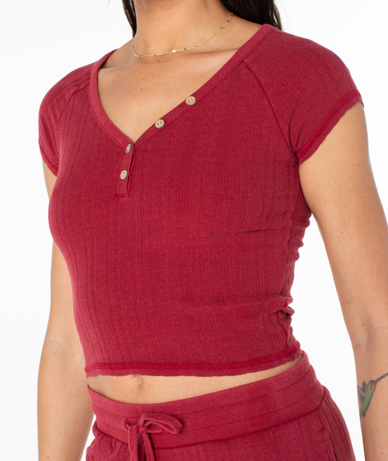 Embrace the girl-next-door look in the cute and cropped Coffee Date top. Named accordingly, this piece is ideal for a casual trip for your favorite beachside treat.