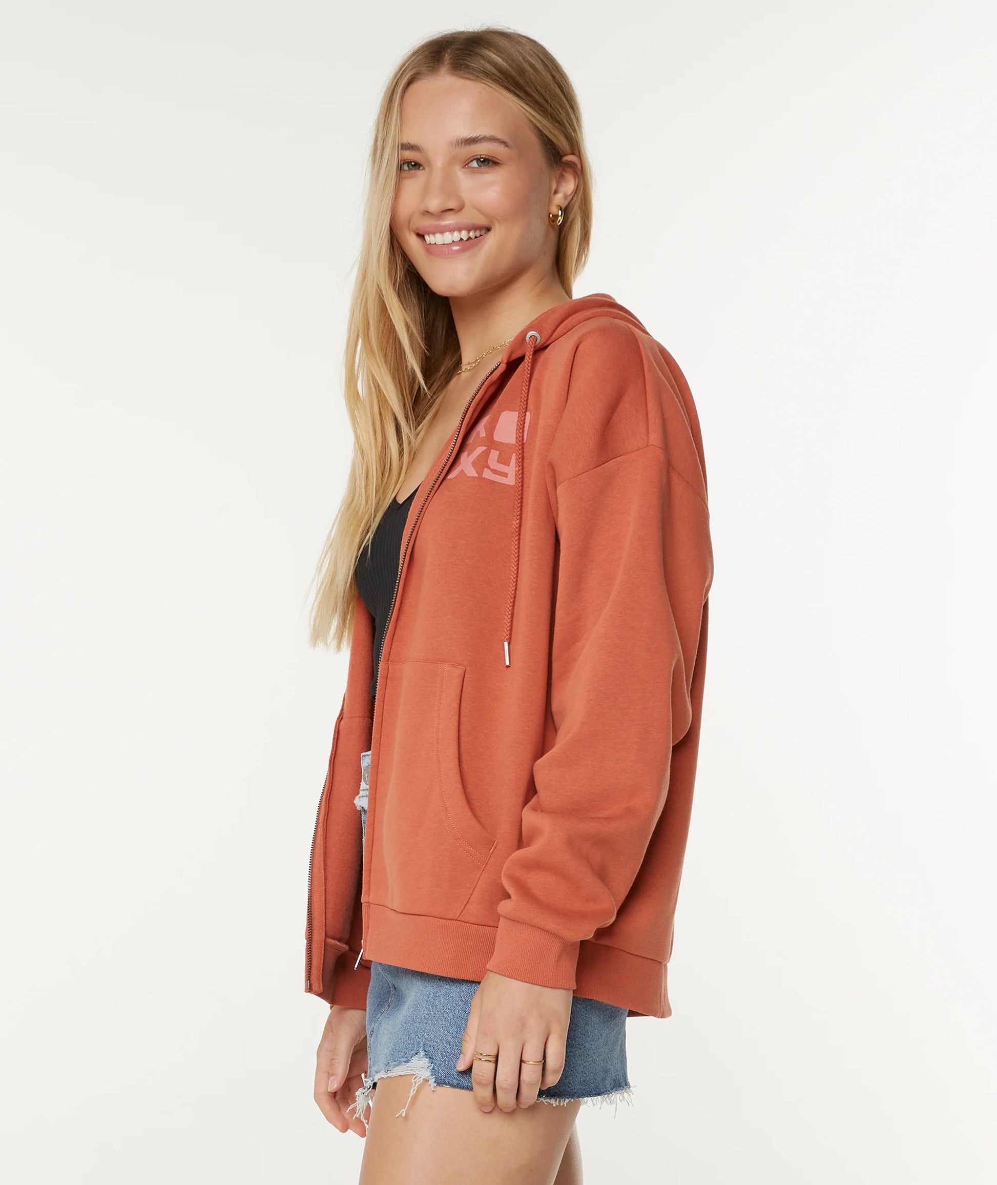 The Evening line up is everything your wardrobe needs for a comfy post-beach outfit. This zip front hoodie features an oversized fit and drop shoulders, perfect for unwinding after a sunny day.